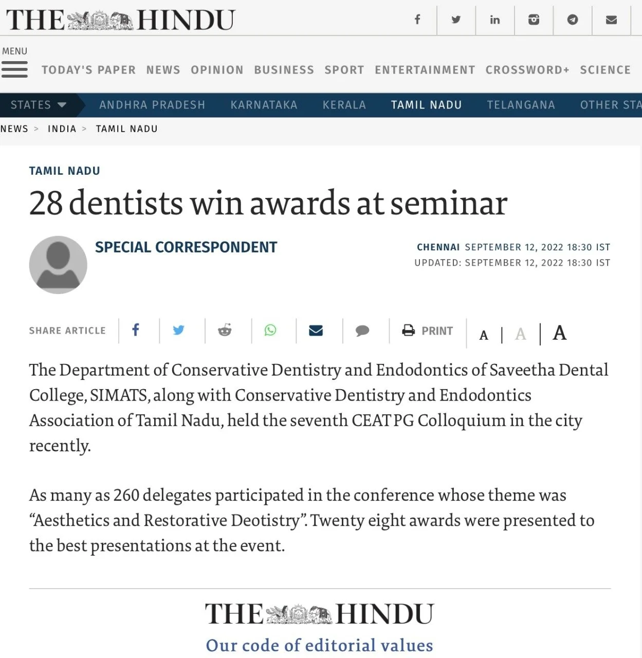 September 12, 2022 Saveetha Dental College The Hindu - 12/9/22 September 12, 2022 Saveetha Dental College The Hindu - 12/9/22 Saveetha Dental College