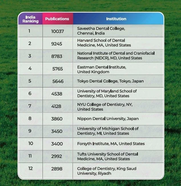 With 65250+ Published articles in SCOPUS®, SDC stands 1st among all dental colleges in the world! Our college has more publications than many 100-year-old legacy institutions like the University of North Carolina, UCLA, etc. Currently, we are only outranked by Harvard, Michigan, Kings College London, Acta, and Tokyo Dental College.