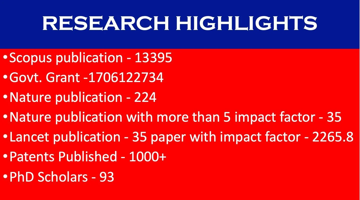 Our dental college has a Scopus H index of 148 and a WOS H index of 118. This is arguably one of the highest in the country. we have more than 100 publications with over 200 citations showing the remarkable impact of our research.